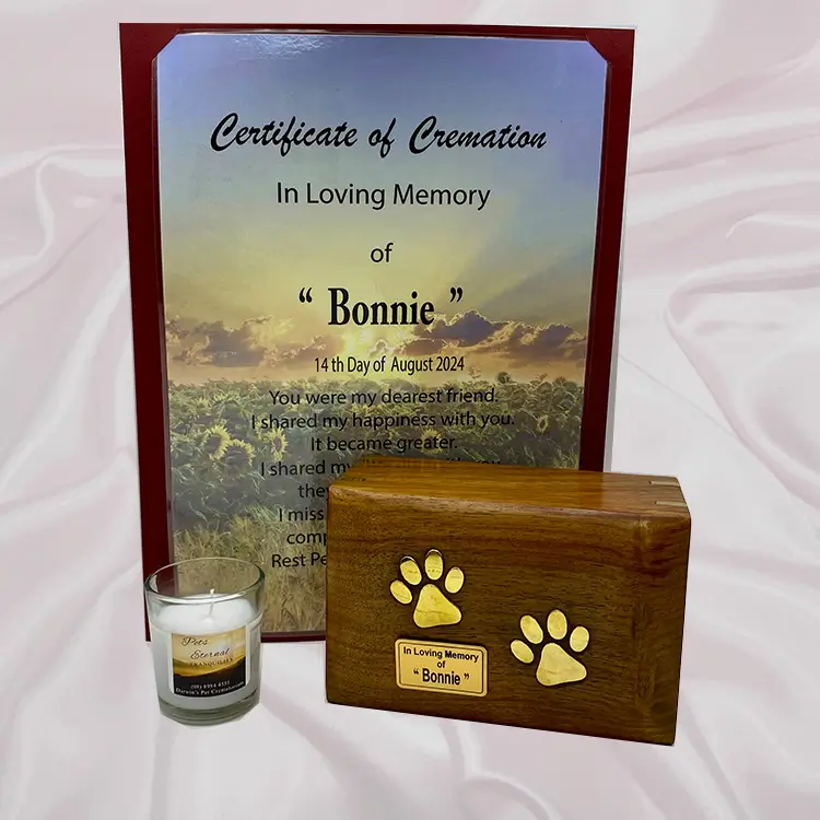 You can choose from a range of beautiful wooden urns and memorial keepsakes to remember your pet in a way that feels personal and comforting.